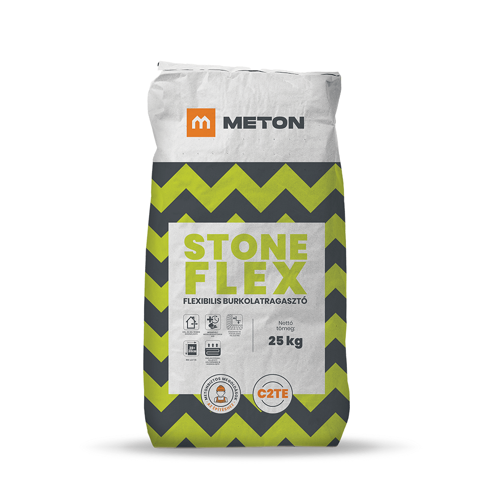 STONE FLEX gyárilag előkevert, por alakú, cement kötőanyagot, ásványi töltőanyagot és tulajdonságjavító adalékokat nagymértékben tartalmazó víz és fagyálló szürke színű flexibilis ragasztóhabarcs. A STONE FLEX C2TE ragasztótapasz MSZ EN 12004 szabvány szerinti a C2TE osztályba tartozik.